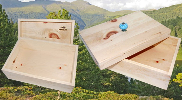 Die Brotdose aus massivem Zirbenholz kommt ohne jegliche Metallverbindungen aus, was den Anspruch der Natürlichkeit noch weiter unterstreicht.
